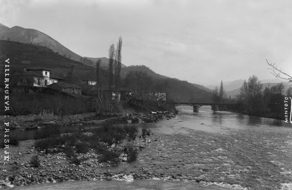 En 1909 se fabrica el nuevo puente de Sotu Cangues, a expensas del municipio y de los vecinos del pueblo[xxxii]. Dos años más tarde el de Les Canaliegues y el de Celoriu, que es “de magnífica y sólida construcción y de anchura suficiente para el paso de toda clase de vehículos” y da servicio a Cardes, Onao, Perlleces y otros lugares[xxxiii]. Entre los años 1911 y 1915 se abre la carretera del Repelao a Llerices. En este último año, el puente sobre el río Sella, que une Arriondas con el concejo de Cangas de Onís, está terminado y la Diputación provincial concede una subvención del 50 por ciento para la reparación del de Villanueva[xxxiv], destruido por la riada de los días 2 y 3 de octubre de 1915[xxxv]. El diputado Manuel de Argüelles gestionó del Estado una subvención de 30.000 pesetas[xxxvi] y el rico americano Federico Pintueles donó otras 10.000 en nombre de todos los vecinos[xxxvii] para su reconstrucción, que se estaba llevando a cabo en 1921. Se construyen chalets en Cangas de Onís, el nuevo templo parroquial de Santa Eulalia de Abamia en Corao[xxxviii]…