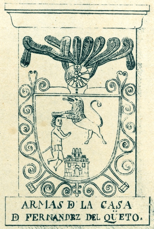 Las gastadas y no descritas armas de los Fernández son otro asunto a considerar. En la actualidad conocemos las armas, sin los esmaltes, de los Fernández del Cueto de Corao: un castillo surmontado de un león rampante, que corona a un caballero armado arrodillado ante él[7]. Así se veían en el Palación de Corao, de lo que tenemos constancia por un dibujo publicado en los Recuerdos de Asturias, editados por Eduardo Llanos[8]. En el hermoso escudo de la casa de los Fernández del Cueto y Noriega (Coraín, Cangas de Onís), no figura el castillo. ¿Serían estas las armas de los Fernández de Corao?