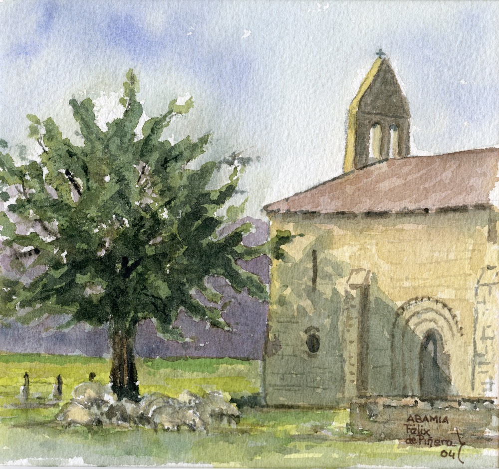 Abamia… Allí está la antigua iglesia. Al dar vista a ella, no puedo menos de recordar, para aplicárselas, aquellas palabras del sabio rey Alfonso: “Vacía de pueblo, bañada de lágrimas, cumplida de apellido, huéspeda de los extraños, engañada de los vecinos, desamparada de los moradores, viuda e asolada de los sus fijos… desmedrada por llanto e por llaga, fallescida de fortaleza, flaca de fuerza, menguada de conorte y asolada de los suyos…”