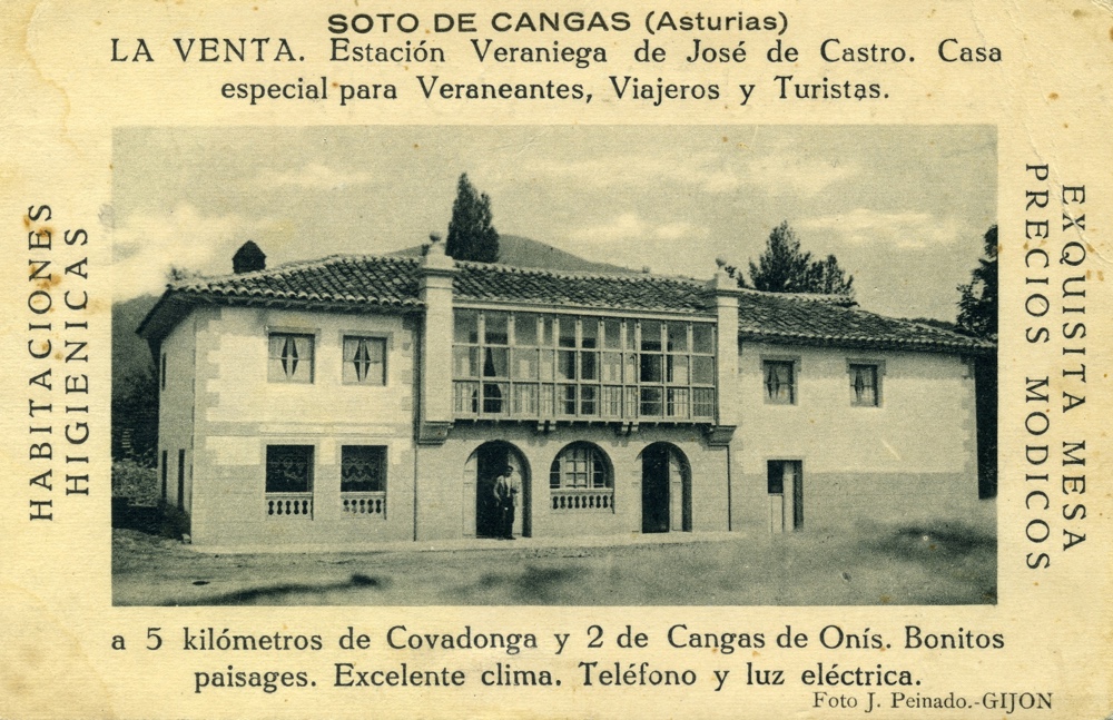 A otro género corresponde su exitosa y pionera guía turística de las tierras asturianas, Turismo – Asturias (Guía para el turista), de la que publicó tres ediciones entre 1913 y 1915. En 1912 estaba colaborando con Luis del Castro en la realización de una Guía para el turista por el Norte de España[13], obra que no se debió llevar a cabo. En la suya, inspirada en la Guía general del viajero en Asturias de Fermín Canella (Gijón, 1899), logró involucrar, como él mismo cuenta en una nota a la segunda edición, a prestigiosas figuras de Asturias y del alpinismo de entonces, entre los que hallamos a Enrique Victorero, director del Gran Hotel Pelayo, de Covadonga, y a Pedro Pidal, marqués de Villaviciosa de Asturias. Y a reputados fotógrafos, como Pelayo Infante, “el redactor artístico y fotógrafo de Cangas de Onís, que me acompañó tantas veces y que a pesar de su modestia ha colaborado con hermosas composiciones”.