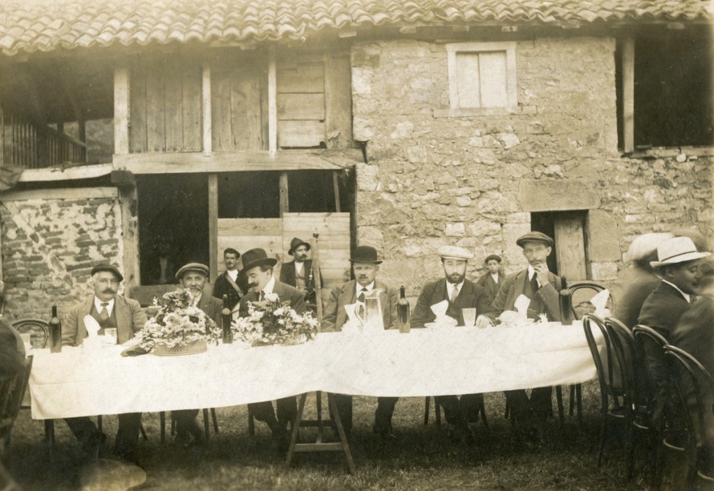 Nosotros no tenemos ningún Zaragoza por lo que no podemos tomar ningún camino importante, pero sí que somos capaces de brincar por alguna caleya gracias a una fotografía que nos cedió Pepita Borbolla (Ortigueru). Realizada por Pelayo Infante el primero de septiembre de 1915, nos muestra la mesa presidencial del homenaje ofrecido a José Ramón Zaragoza por el Círculo de Artesanos de Cangas de Onís para festejar su triunfo en la Exposición Nacional de Bellas Artes de dicho año.